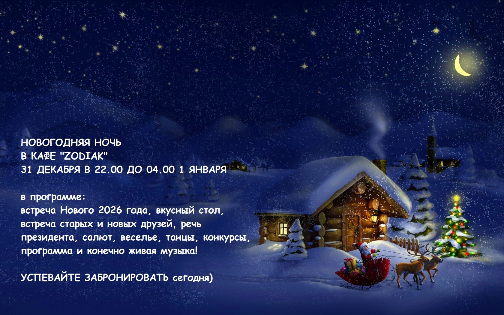 Открыто бронирование с 14 по 30 декабря, торопитесь) .. НОВЫЙ 2026 ГОД к нам мчится, скоро всё случится... Ждём всех на Новогодние Корпоративы в Академгородке! Сказочные вечера с живой музыкой, новогодней ШОУ-программой, конкурсами, сказками, любимыми песнями, жаркими танцами и конечно же вкусными угощениями за новогодним столом!